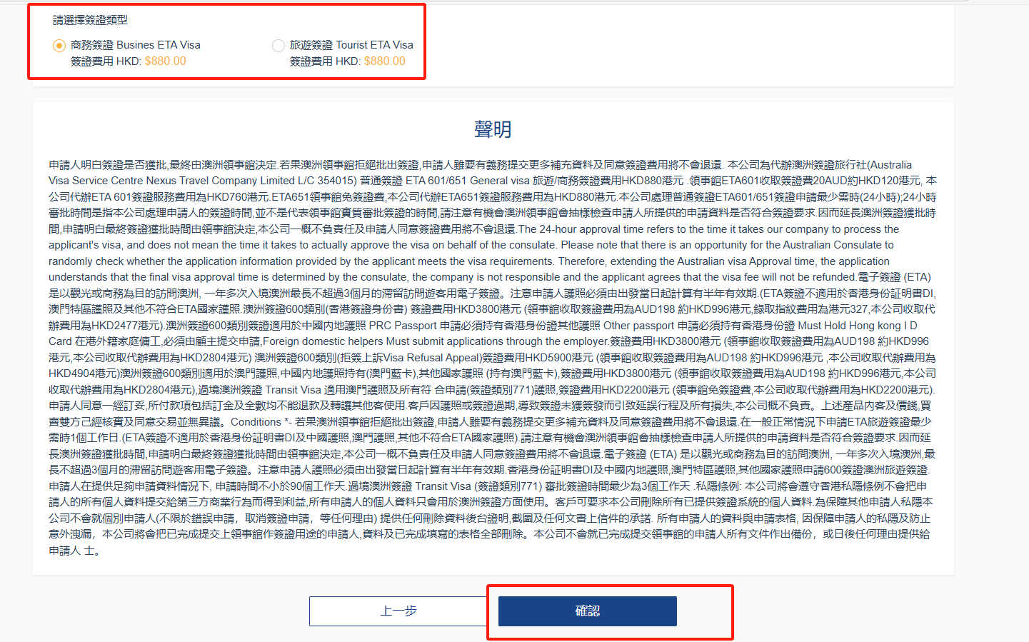 選擇簽證費用