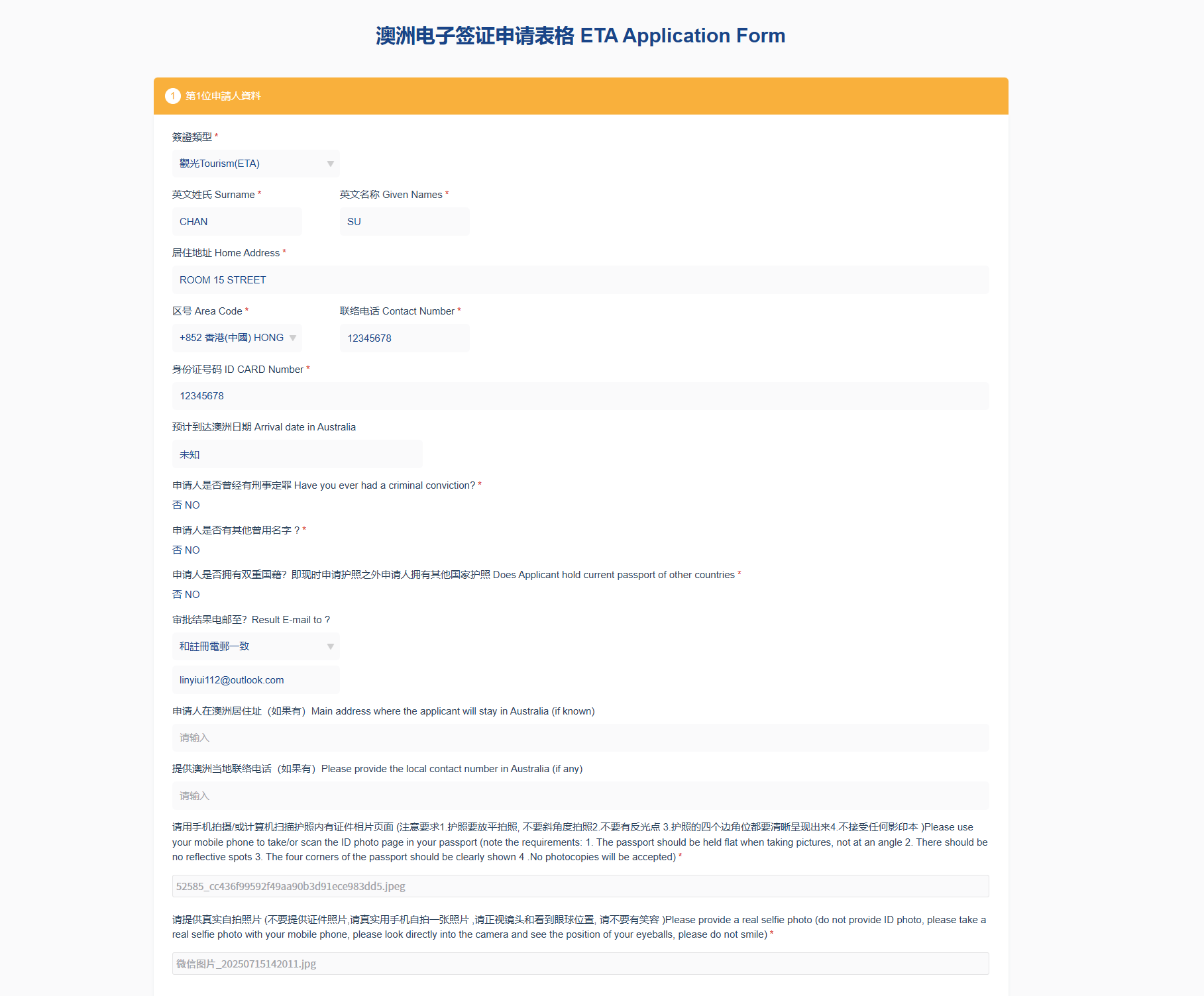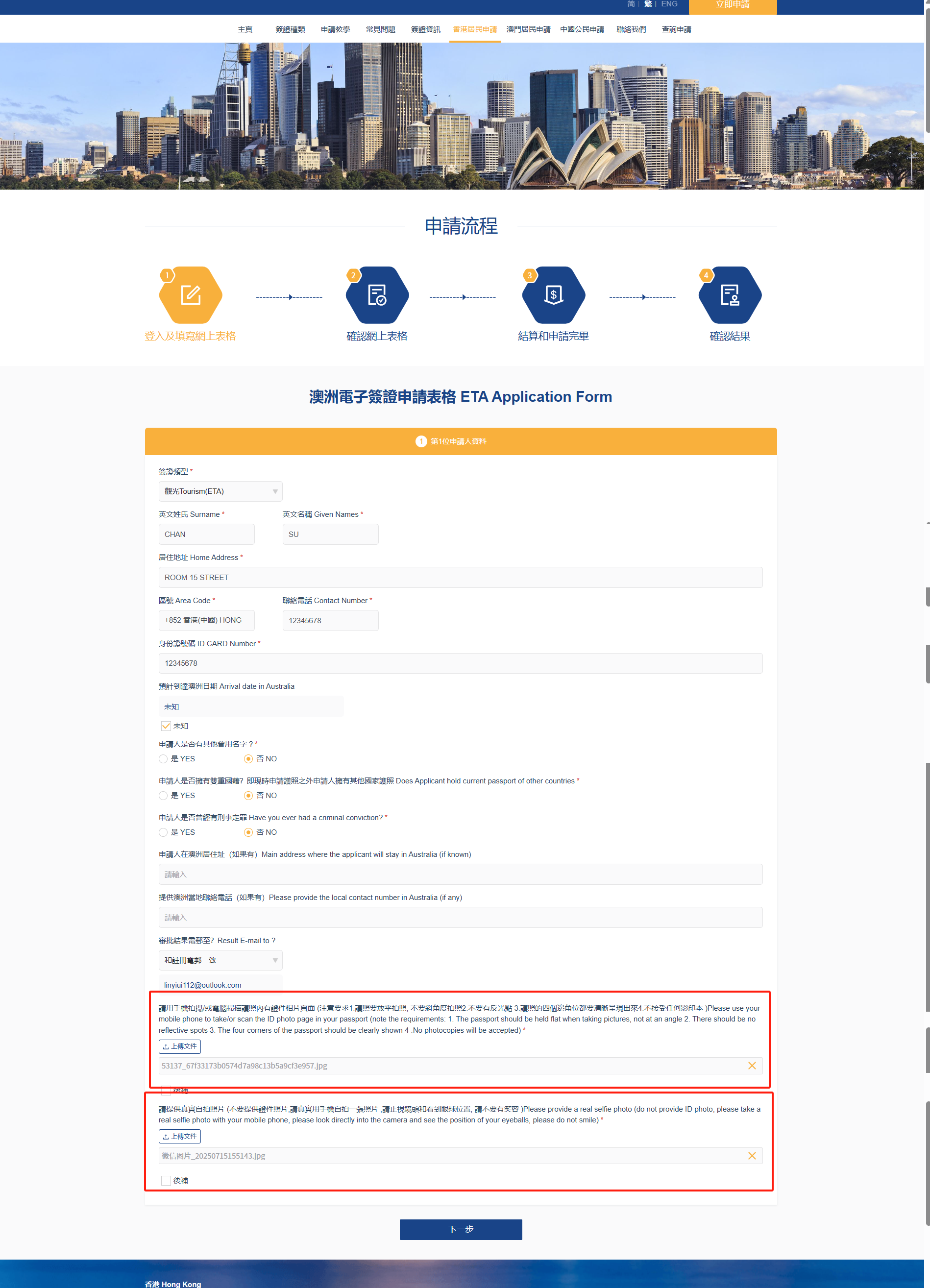 上傳護照及自拍照片